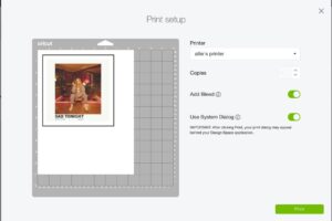 The album artwork will be a Print & Cut file, and your vinyl will be a Cut file. This is very important – click “Use System Dialogue.” Once the dialogue box for the printer settings pops up (often behind all of your windows), select the best possible settings your printer will allow you to. These will vary depending on the printer. In the past, I have marked “photo glossy paper” (even though the printable vinyl is matte) and “best quality” – with my current printer, I simply mark “photo paper.” Using your printable vinyl, print and cut the file, then cut the rest using your white vinyl.